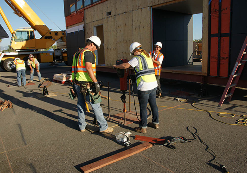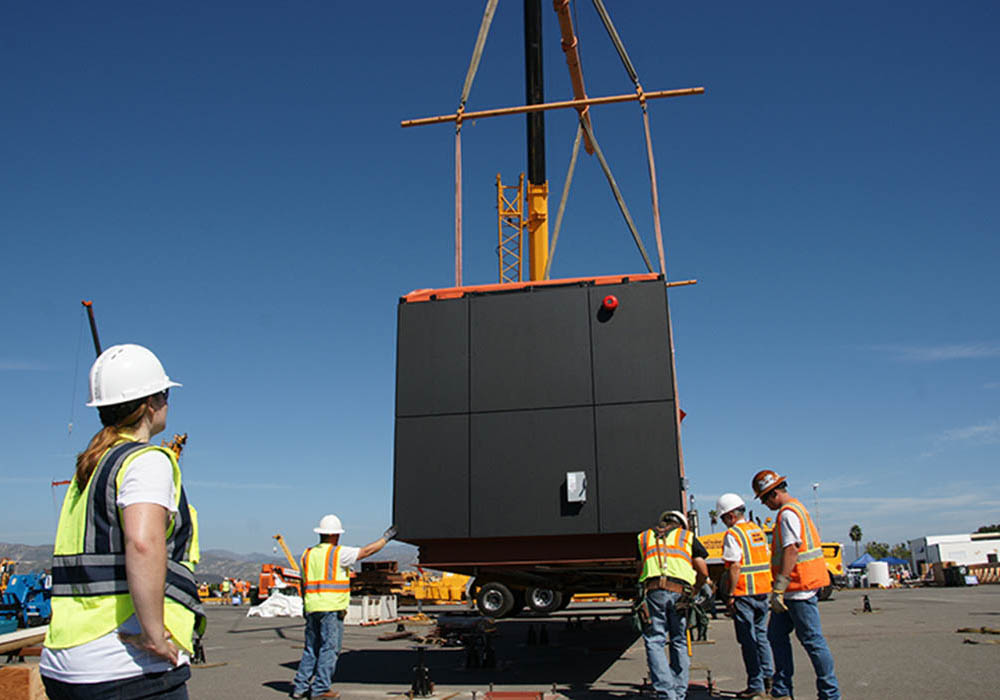 Irvine, we watched the crane as it placed the modules, helped set and stake the foundation piers, and assisted