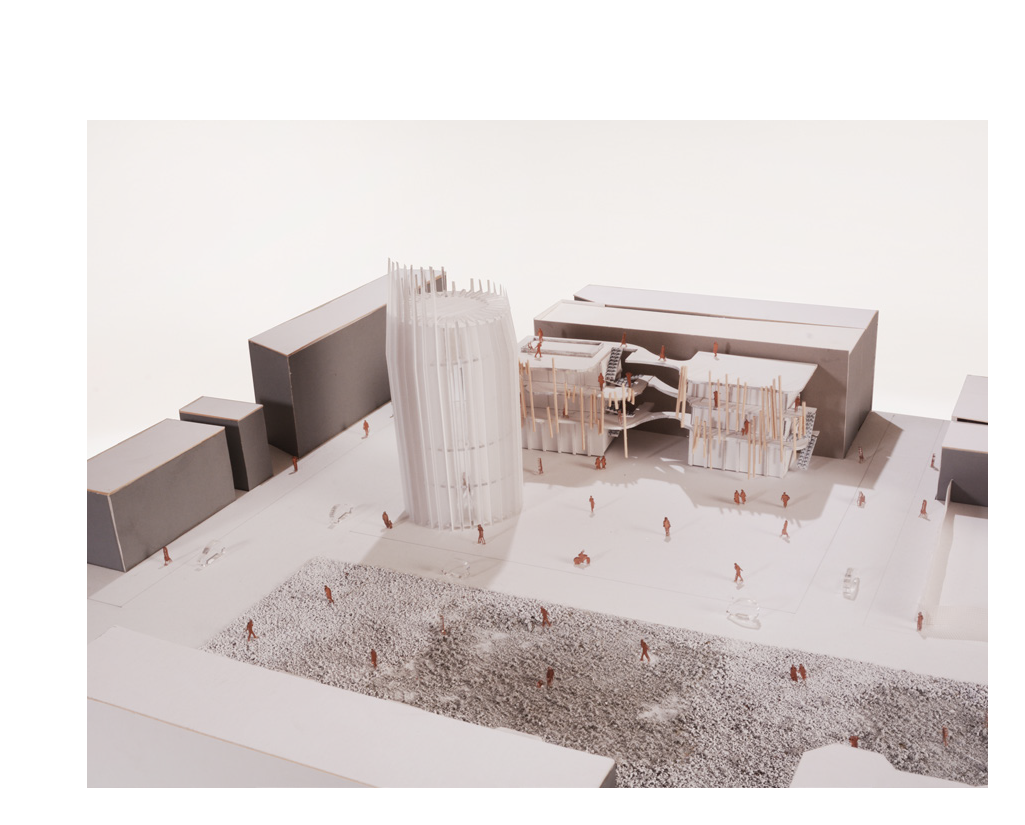 underground tunnel and gallery space and it connects to the plaza which has seating and an amphitheater and display space.